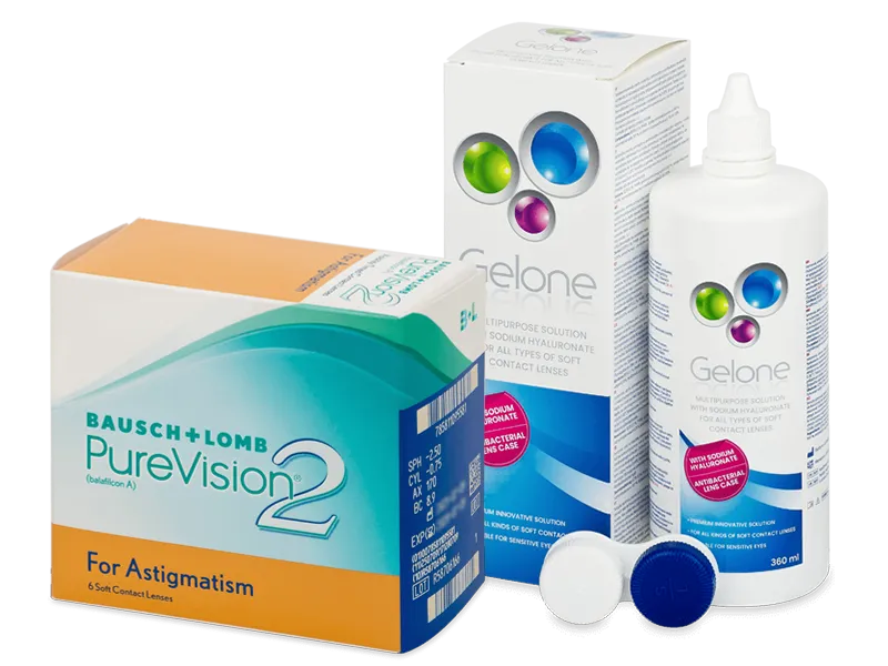 PureVision 2 for Astigmatism (6 Linsen) + pflegemittel Gelone 360 ml